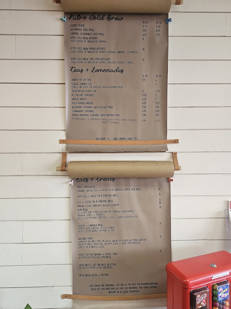 The Eats & Treats Menu features freshly made bagels, including the must-try Peanut Butter Banana Honey and savory Avocado Toast. For those with a sweet tooth, the Danish/Scones and rich brownies are simply irresistible.